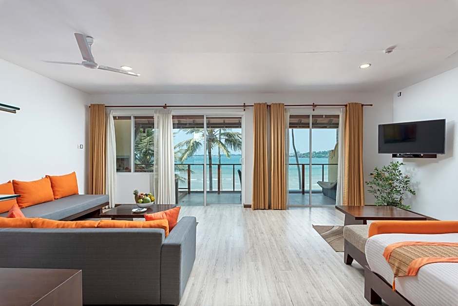 Payment options include cash, Visa, and Mastercard. The property is well-regarded by guests, with 292 reviews highlighting its status as a popular beachfront retreat in Sri Lanka.