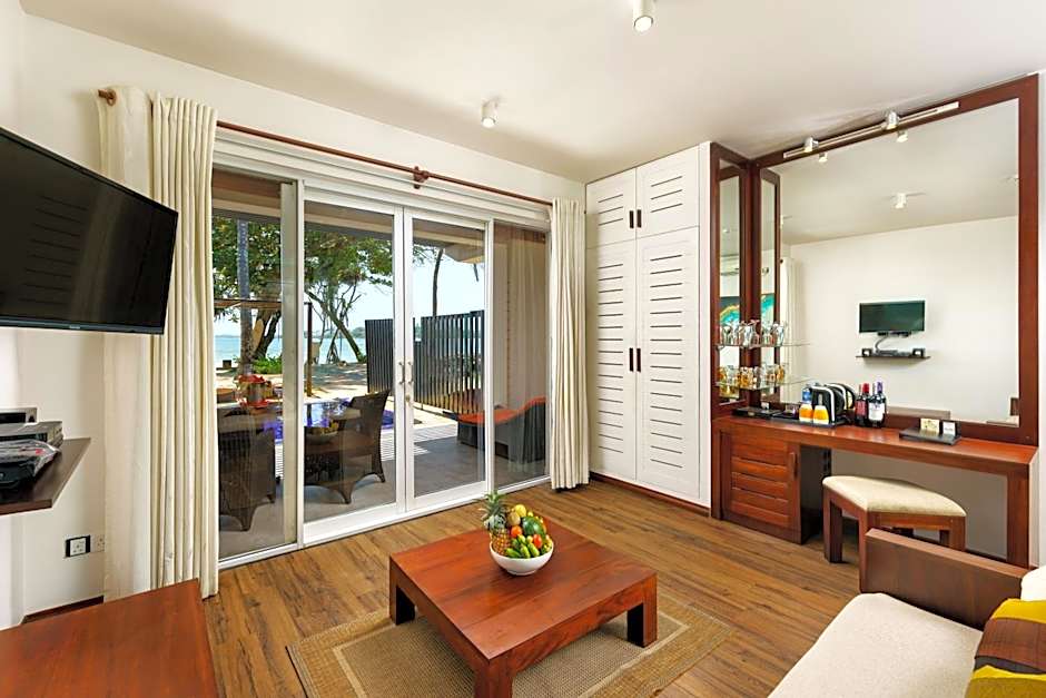 Payment options include cash, Visa, and Mastercard. The property is well-regarded by guests, with 276 reviews highlighting its status as a popular beachfront retreat in Sri Lanka.